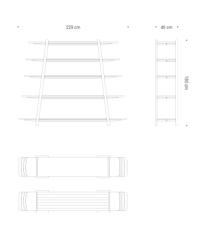 In mahogany with inlaid stripes in maple and in maple with inlaid stripes in mahogany, available with the central part of the shelves in leather. What is fascinating is the interlocking of the shelves on the nickel-plated steel structure, free of mechanical constraints and the result of very refined cabinet-making work. The simple refinement of the solutions suggests that "Custode del tempo" was already born this way. But, from the overall architecture to the most minute detail, this bookcase is the result of continuous rethinking, of going back and forth, in a constant search for balance between the constructive necessity of the craftsman and the free experimentation of the artist, exploded in the final product.