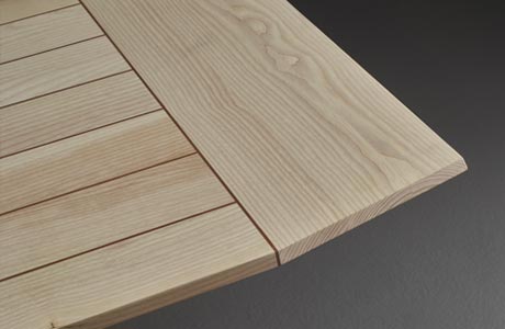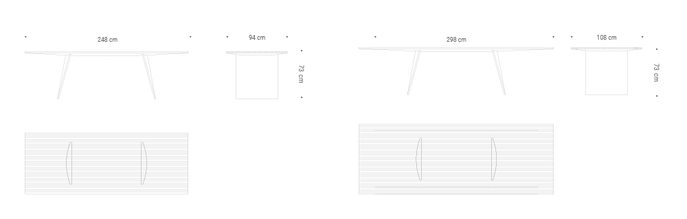 Happy table, as happy as the moments that will be lived around it. The table top, with its angular lines, is supported by two solid wood trestle bases. Happy table can be made entirely of solid wood, mahogany with maple inlays or ash wood with mahogany inlays,.