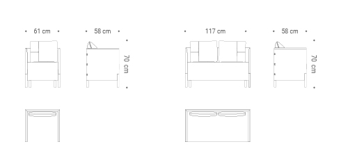 “Minimum Max” is a tribute to Le Corbusier and the LC2 from 1929, which represented a perfect synthesis of form and function and featured a revolutionary outer metal structure to support the whole chair and an interior section designed to respond perfectly to the human body’s need for comfort. With just two cushions (one for the base and one for the back) and a solid wood frame, this Bottega Ghianda variation features an ingenious combination of minimalist profile and a gorgeous seat that is made for curling up in. With removable cushion, the backrest highlights this propensity to embrace the body, enticing us with its curved hollow that has been expertly smoothed, and is particularly evident when seen from above.