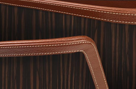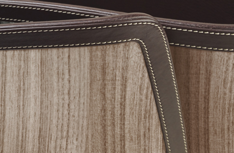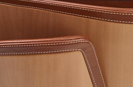Curved profiles intertwine, echoing natural forms, in this versatile magazine container with delicate lines. The available finishings present different combinations of wood, smooth and tumbled leather, bringing out the best in each of these precious materials.