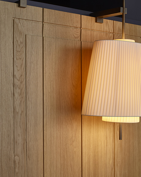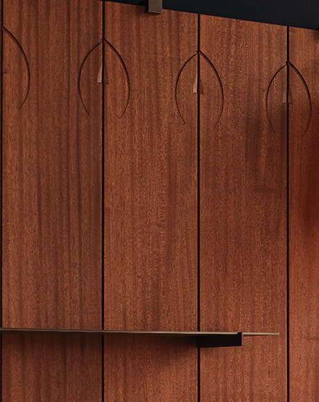 Pieces of Styles, progettata da Philippe Starck, rinnova la tradizione delle boiserie francesi del XVII-XVIII secolo, proponendo una soluzione a tavole modulari in legno massiccio dagli intarsi decorativi di elegante essenzialità, versatili nel proporsi con linee rette o curve, che si adattano ad ambienti di “stili” diversi. E come suggerito dal titolo, queste tavole vanno guardate non solo come un’avvolgente cornice che fa arredo, ma come “pezzi” dal carattere unico, da cui emana il DNA dell’ambiente, la sua anima.