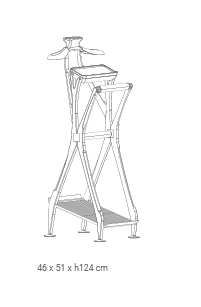 Michele De Lucchi has designed the most industrious butler of all times: an elegant chap, always immaculately turned out in his livery of soft wooden forms. He has long tapered legs, and his open arms bear a storage box with smooth angles. The parts are connected by dovetail joints. From up close, the crenelated wedge becomes easily visible; with a refined visual effect, it reveals all the expertise required to produce it.